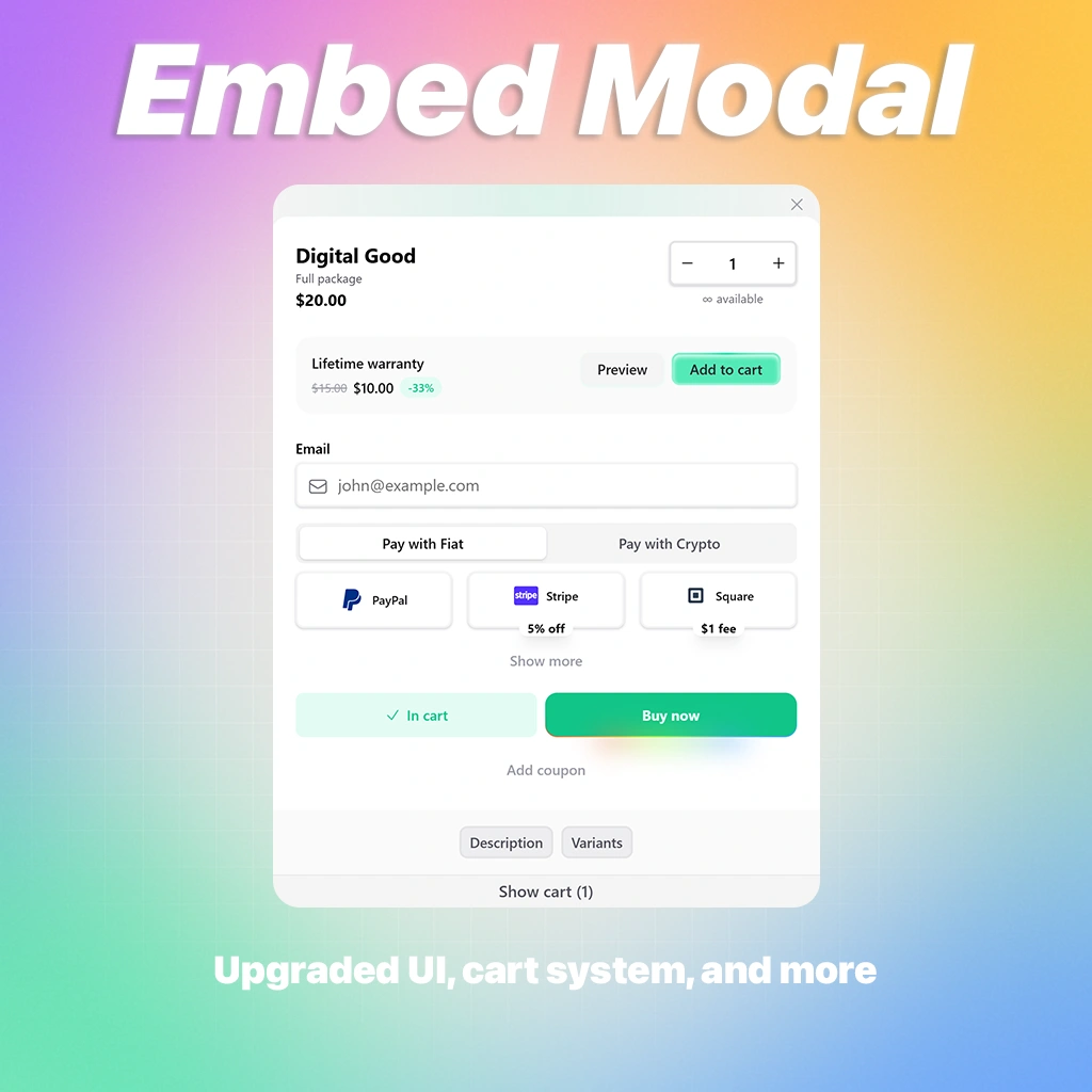 - Add-ons: Create dedicated add-on products and attach them to specific products so customers can purchase them in a single click